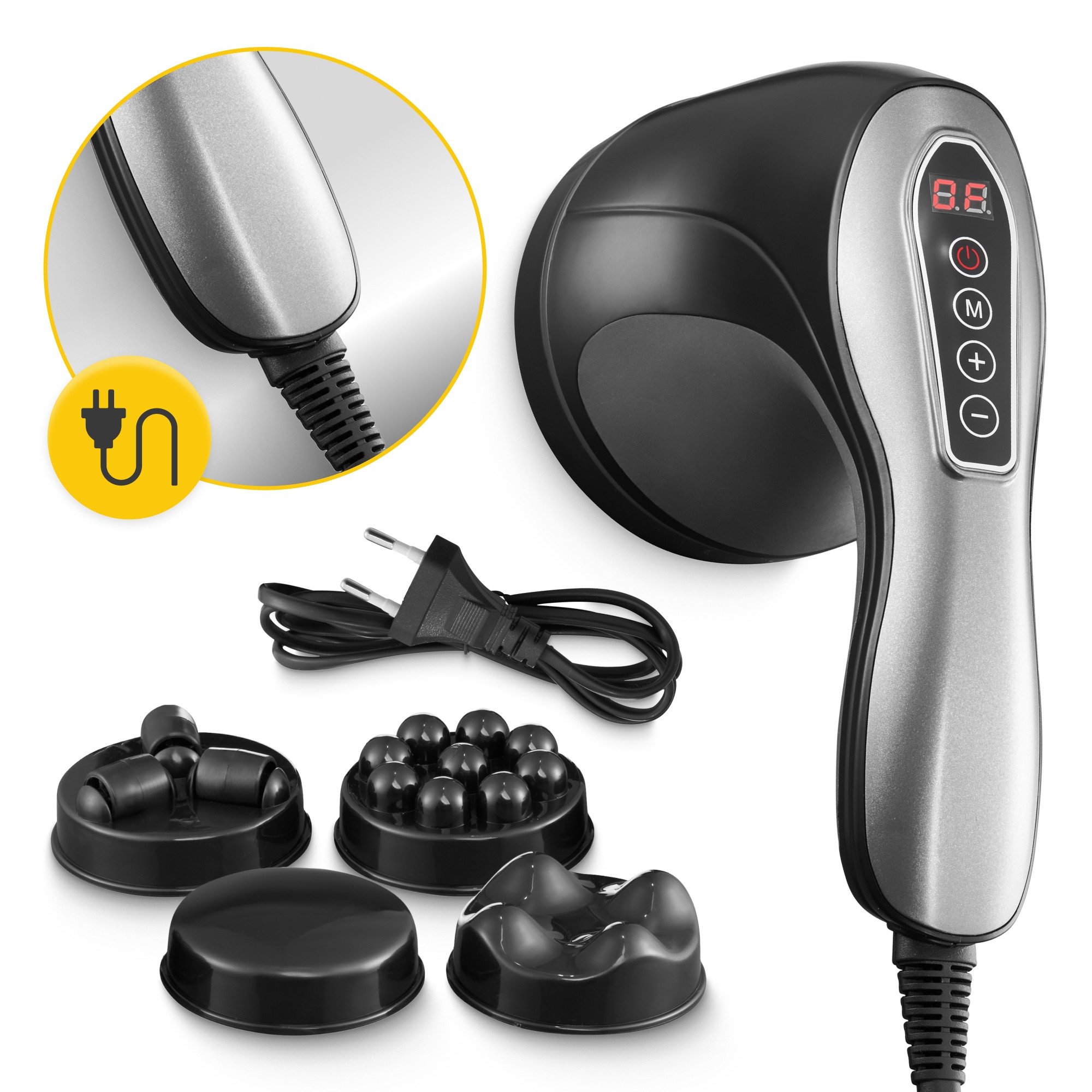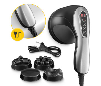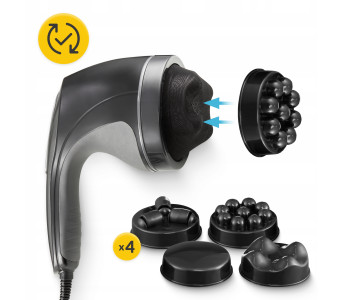 Масажер постачається з чотирма насадками для різноманітних цілей: плоска (розслаблюючий, декомпресійний масаж), роликова (боротьба з целюлітом, прогрівання м'язів), опукла (акупунктурний ефект, стимуляція тканин), кулькова (розчеплення жирових тканин). Це дозволяє опрацювати всі зони та проблеми.