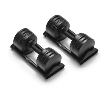Пара гантелей замінює 11 пар звичайних гантелей, що робить їх ідеальним вибором для домашніх тренажерних залів та невеликих просторів. Це високофункціональне обладнання з лаконічним чорним дизайном.