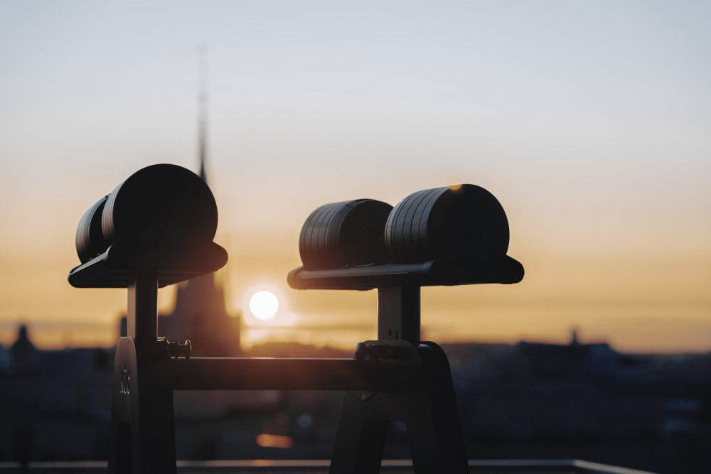 Гантелі дозволяють легко та швидко регулювати вагу з кроком 2 кг у діапазоні від 2 до 24 кг. Унікальний запатентований шведський механізм гарантує безшумну та безпечну роботу: просто поверніть ручку, щоб вибрати потрібну вагу, а непотрібні млинці залишаться на підставці.