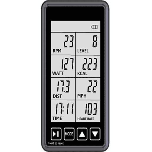 У комплекті постачається монітор (13 см), який працює від енергії, що виробляється генератором. Він відображає ключові параметри, включаючи вимірювання пульсу.