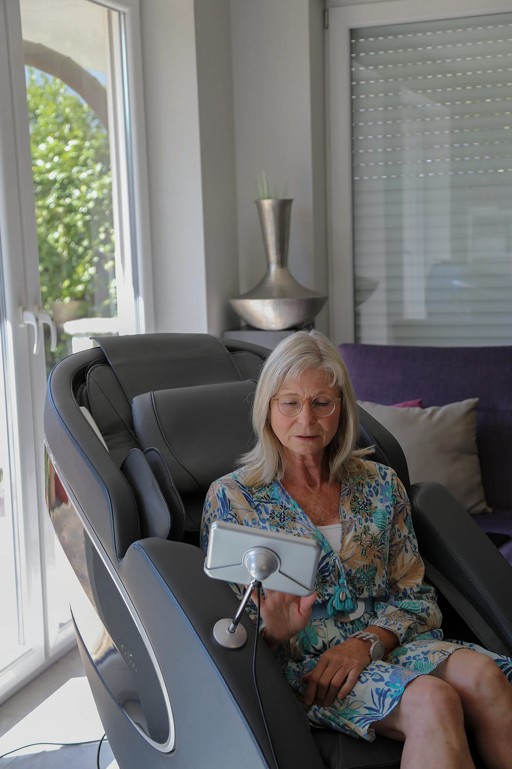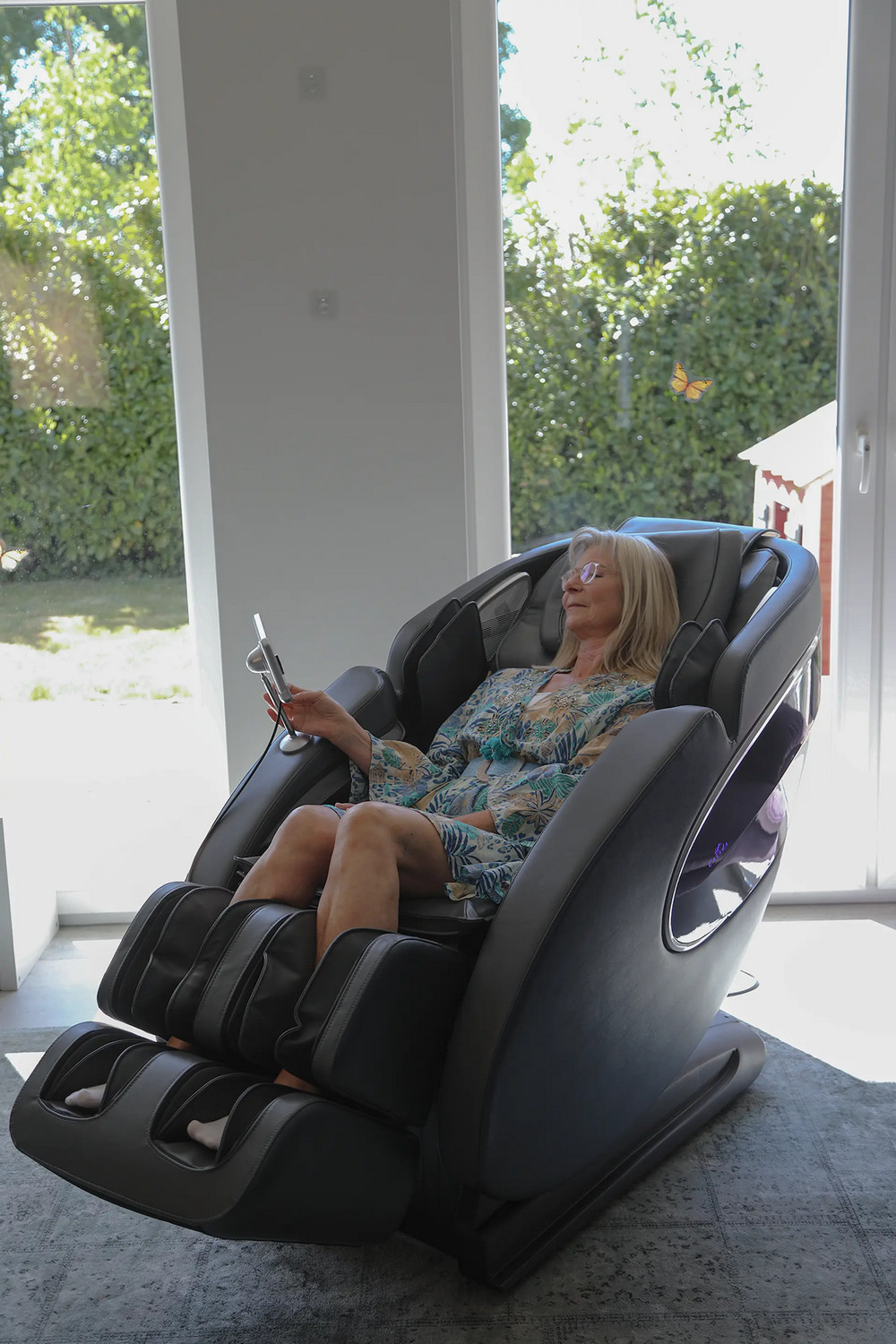 Крісло пропонує широкі програми масажу, включаючи такі техніки, як розминання та Шиацу. Інтенсивність та тривалість (від 10 до 30 хв) можна точно налаштувати для індивідуального розслаблення.