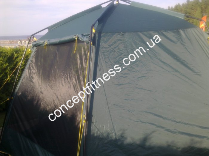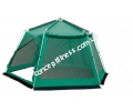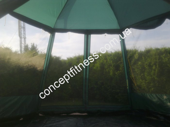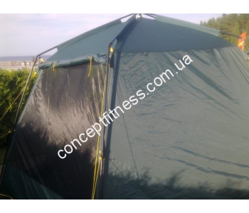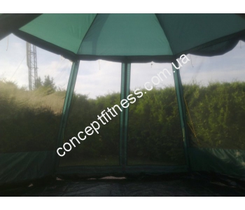 Sol Tent Mosquito green SLT-0ЗЗ.04 захистить цінителів пляжного відпочинку від спекотного сонця, легкого дощу, укусів комах завдяки продуманій конструкції, яка обладнана антимоскітними сітками, які розташовані на стінках кожної грані вироби, а також спідницею- на блискавці. Міцний сталевий каркас забезпечує наметі високу стійкість навіть на похилих поверхнях. Виконана у формі шатра, намет має один вхід, ергономічна, легка в догляді /збірці, приємна на вигляд, має вагу в 9,8 кілограм і легко транспортабельна.