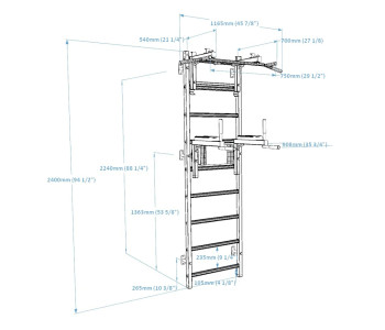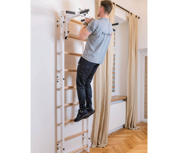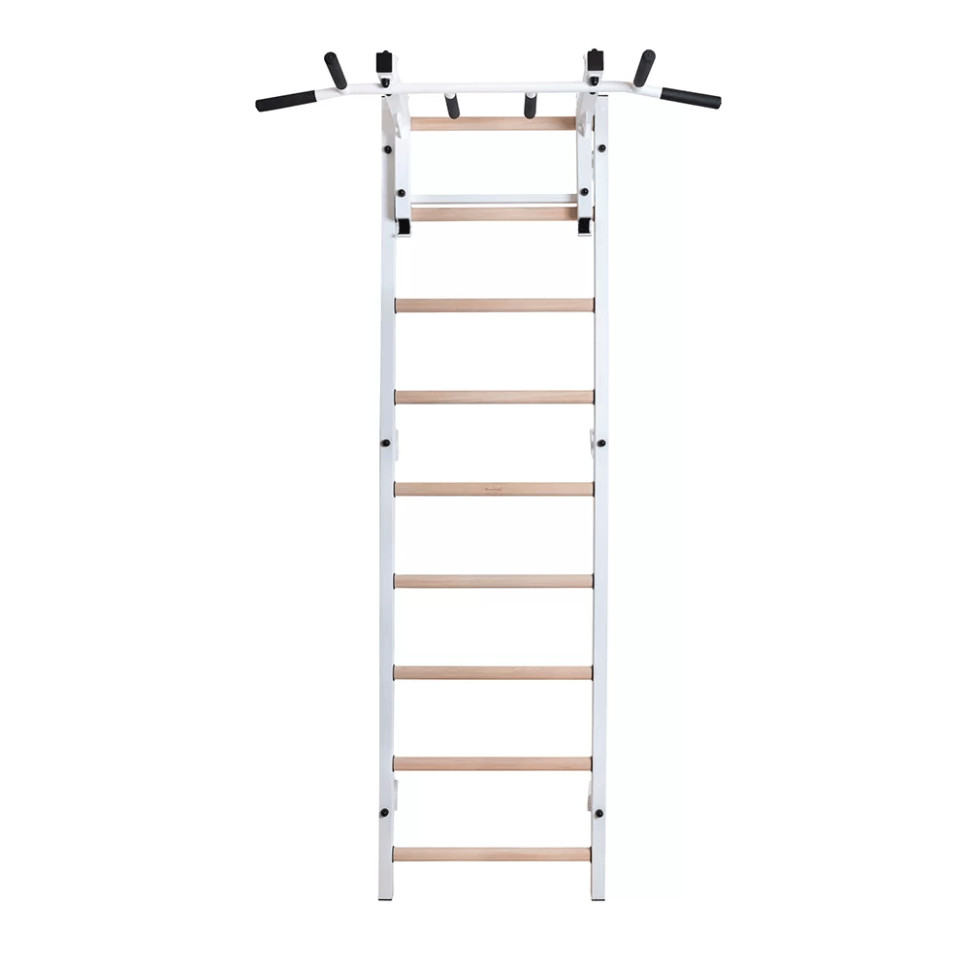 Маючи розміри всього 54 × 117 × 240 см, ця шведська стінка займає менше 1 кв. метра! З додатковим обладнанням (не входить у комплект) вона перетворюється на повноцінний домашній тренажерний зал, що робить її ідеальною для невеликих приміщень.