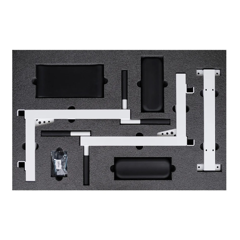 Головна перевага — знімна багатофункціональна перекладина PB3W, висоту якої легко регулювати однією дорослою людиною. Коли перекладину перевернути, вона слугує надійною підставкою для штанги, витримуючи вагу до 200 кг. Це дозволяє проводити силові та функціональні тренування у вас вдома.