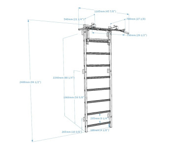 З розмірами всього 54 × 117 × 240 см, ця шведська стінка займає мінімальне місце! З додатковим обладнанням (не входить у комплект) вона перетворюється на повноцінний тренажерний зал на площі менше 1 кв. м, що ідеально підходить для невеликих приміщень.