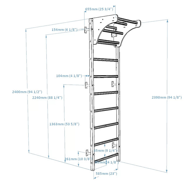 Білий колір металевих профілів чудово поєднується з натуральним буком, створюючи елегантний скандинавський стиль. Займаючи мінімальний простір (66 × 67 × 239 см), вона дозволяє створити стильний міні-спортзал у будь-якій кімнаті чи офісі.