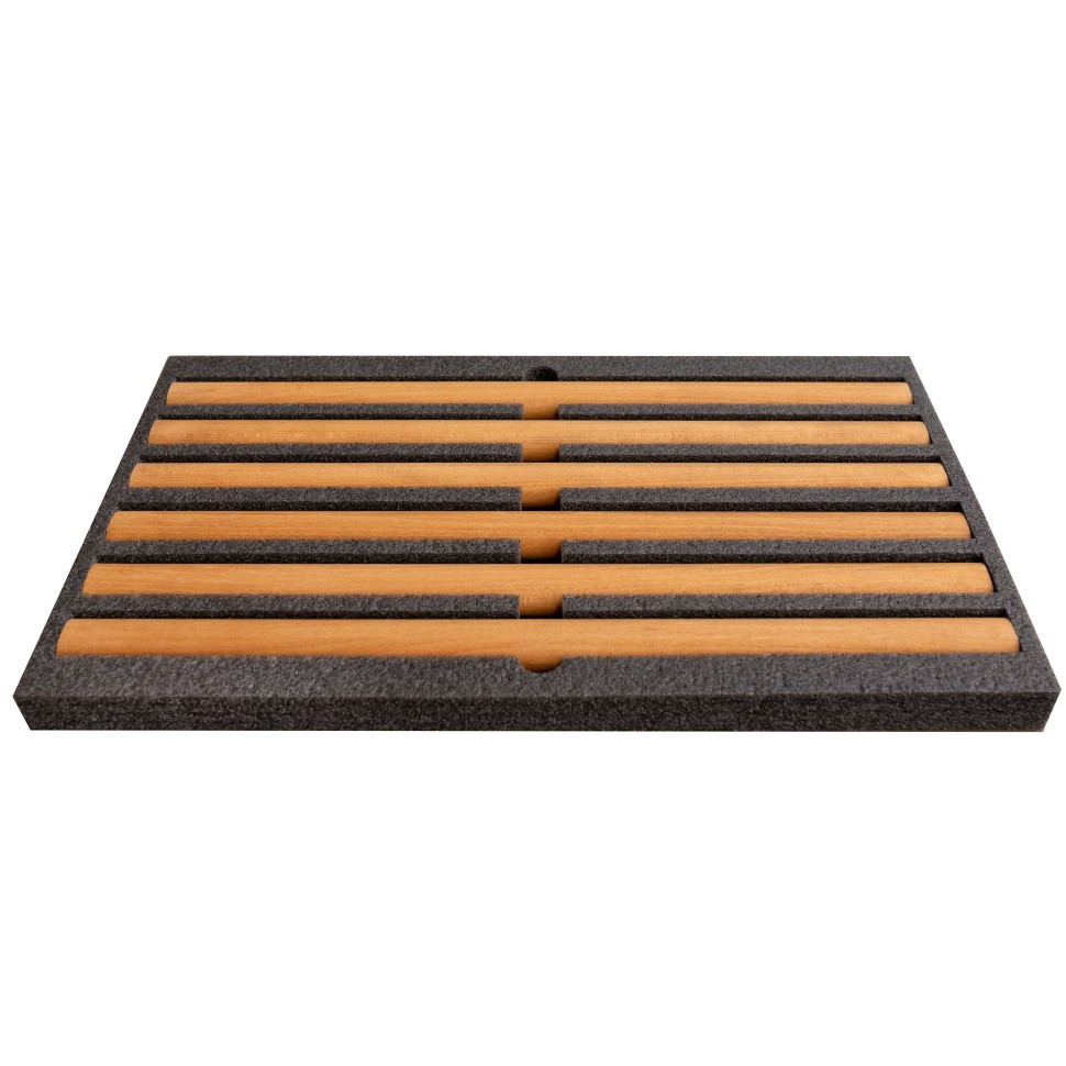 Перекладини виготовлені з масиву бука найвищої якості. Для збереження оригінальної текстури та теплоти дерева, вони не лакуються, а обробляються вручну двома шарами органічної олії на лляній основі (дозволена для контакту з їжею). Це забезпечує приємний та безпечний хват.