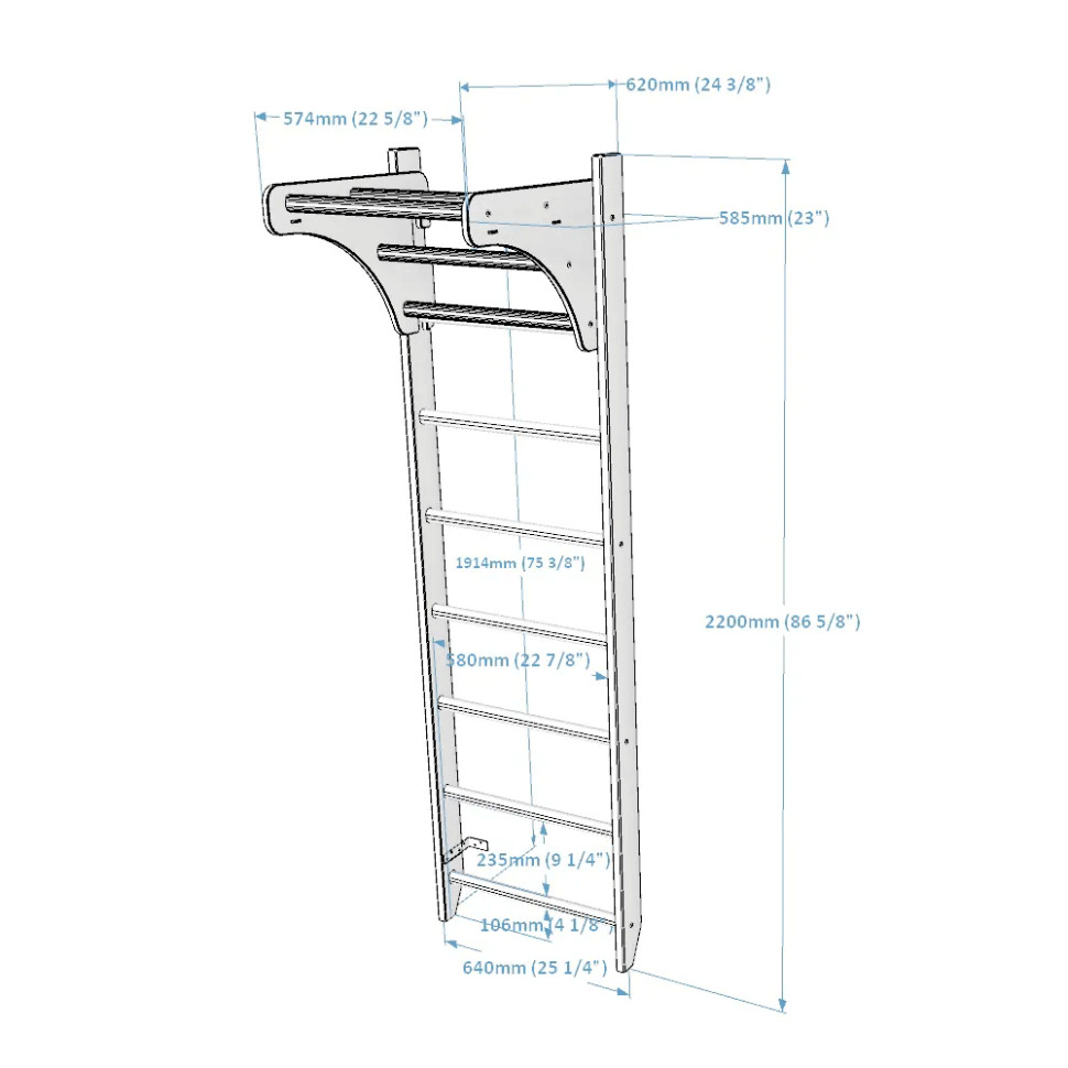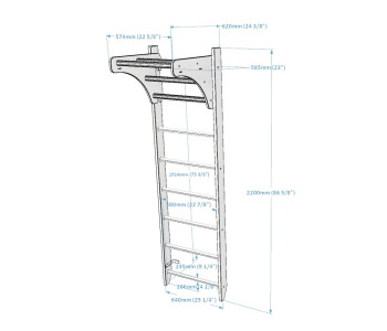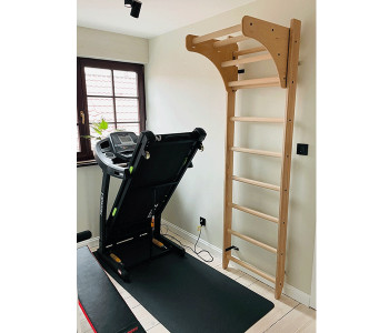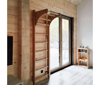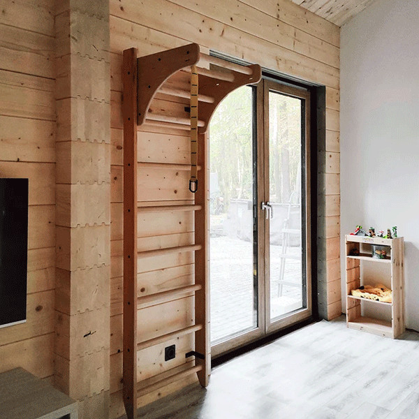 Стінка виготовлена з високоякісного бука, що забезпечує гладку поверхню та естетичний вигляд. Вона має 8 міцних дерев'яних брусків для надійного хвату та комфортних тренувань.