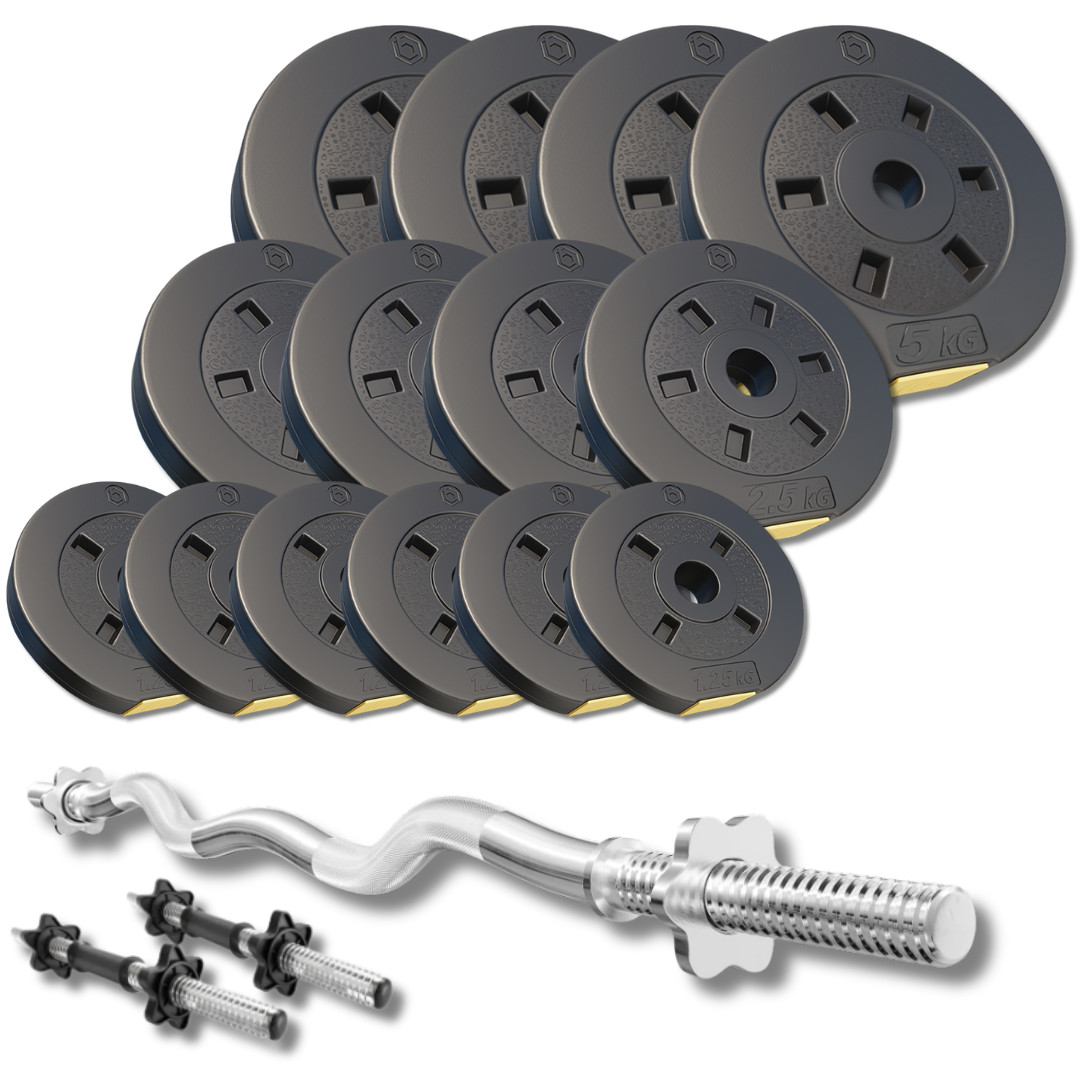 🌟 Основні переваги Набір зі штангою та гантелями Besport PowerPro 46кг з W-подібним грифом 120см