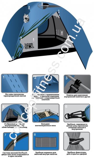 Намет Sol Wonder 3 SLT-006.06 стане відмінним придбанням для любителів активного весняного, літнього та осіннього відпочинку, вільно розміщуючи три, а при сильній необхідності і чотири людини. Конструкція намету має надміцний каркас з фібергліса (7,9 міліметрів), стать, виконаний з якісного матеріалу-терпаулінга, зручний легко встановлюється козирок на стійках при вході в намет, протимоскітні сітки, а також вентиляційні отвори, ефективно провітрювати внутрішній простір намети. Всі матеріали Wonder 3 володіють високоякісними властивостями, надійні, прості в догляді і установці.