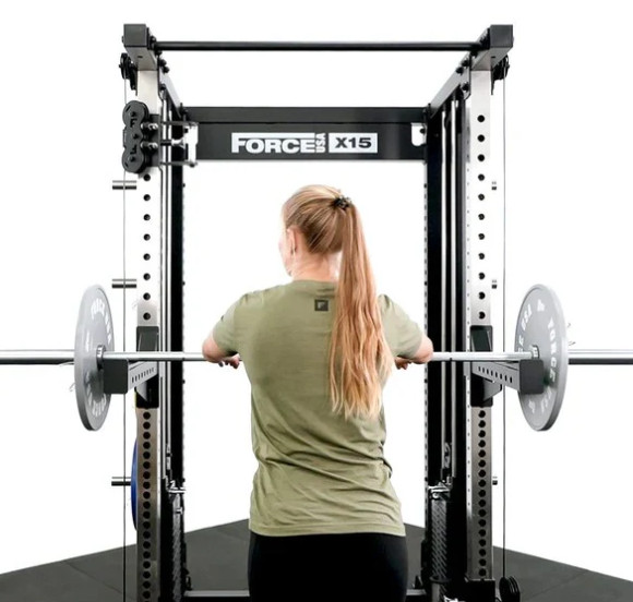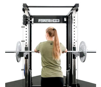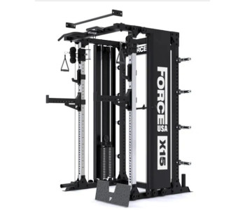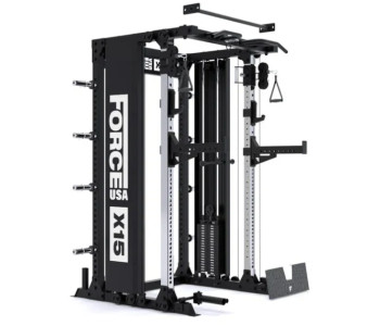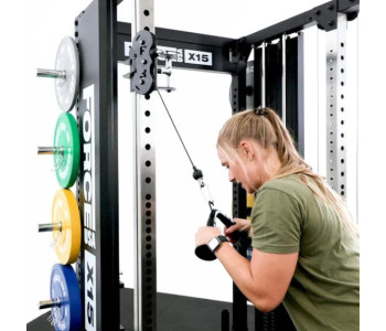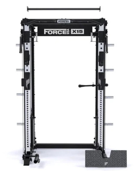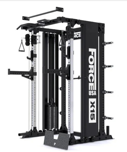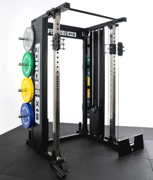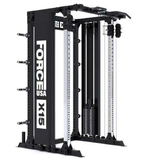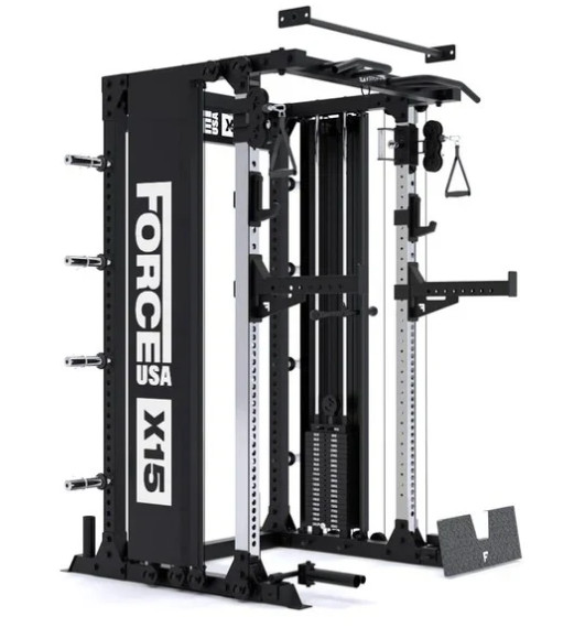X15 поєднує: 1) Напівстійку (Power Rack), 2) Вантажоблокову систему (Cable System), 3) Станцію для підтягувань (Pull-Up Station), 4) Верхню тягу, 5) Насадку Landmine. Це робить її ідеальним рішенням для комплексного тренування.