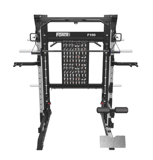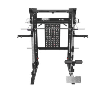 Займаючи площу лише 210 (Ш) × 175 (Г) × 232 (В) см, F100 замінює кілька окремих тренажерів, а вбудовані тримачі для дисків та штанги підтримують порядок у залі.