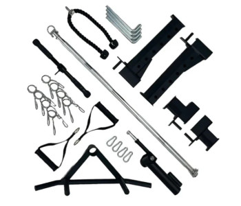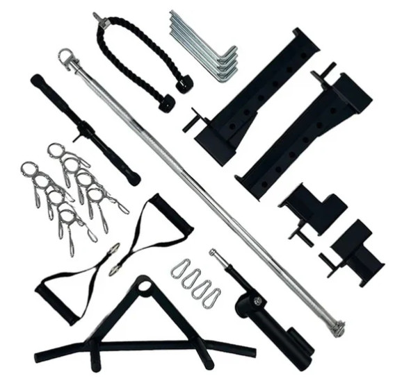 У комплект входять грифи, ручки, канат, кріплення для Т-тяги та TRX. Станція оснащена 6 тримачами для дисків та 2 тримачами для грифів, забезпечуючи порядок у тренувальному просторі.