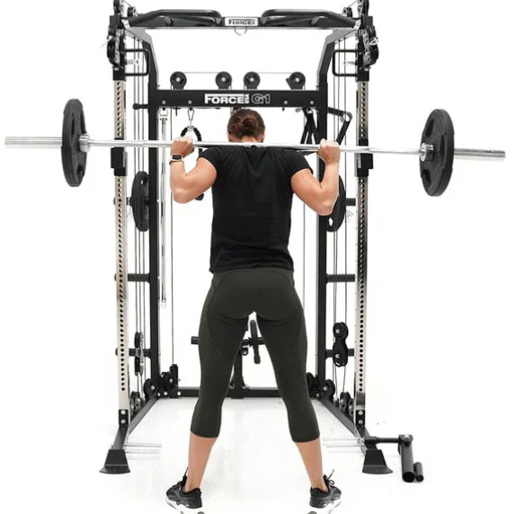 Шукаєте універсальну та компактну станцію, що поєднує основні елементи силового тренінгу? 🥇 Force USA G1 — це ідеальна стартова точка для вашого домашнього чи напівкомерційного залу. Станція інтегрує: силову раму, багатохватний турнік та функціональну тросову (блокову) систему на дисковому навантаженні. Тросова система зі співвідношенням 2:1 пропонує 21 регульовану позицію та витримує навантаження до 160 кг, а турнік — до 350 кг. Завдяки системі отворів Westside (крок 2,5 см) та широкій комплектації аксесуарами, G1 дозволяє виконувати усі ключові вправи (присідання, жими, тяги) безпечно та ефективно. 💪