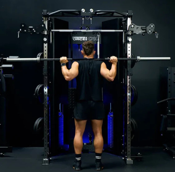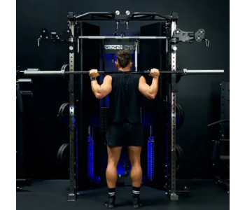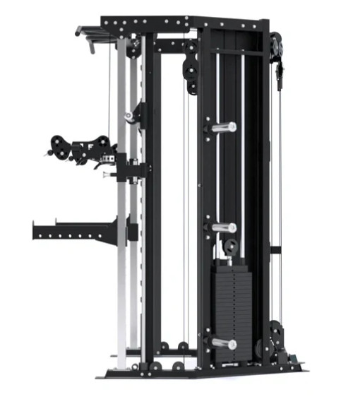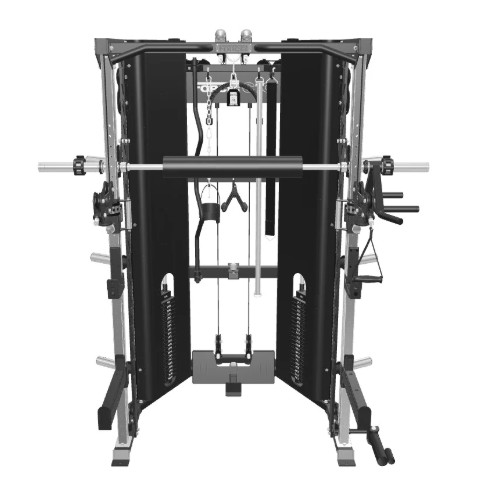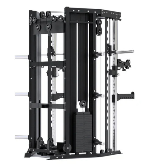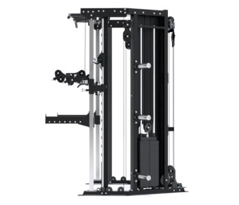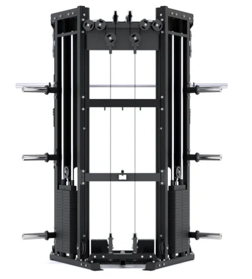 Станція дозволяє виконувати всі основні силові рухи: штовхання, тягу, присідання, жим, нахили, повороти та випади. Унікальна конструкція поєднує машину Сміта та силову раму в єдиній системі.