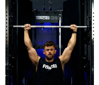 Міцні стійки 50×50 мм забезпечують високу стабільність та сумісність з аксесуарами ForceUSA. Максимальне навантаження на раму становить 450 кг, на машину Сміта — 350 кг.