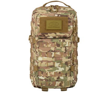 Highlander Recon Backpack 28L HMTC (TT167-HC) - компактний і легкий рюкзак для короткотривалих виходів. Модель виготовлена із міцного водостійкого поліестеру 600D XTP, має систему кріплень MOLLE та чотири окремих відсіки на блискавках для зберігання спорядження в польових умовах. Вентильована спинка Airmesh, компресійні ремені та посилена ручка роблять цей рюкзак компактним та зручним для носіння. Регульовані лямки з м’якими підкладками та регульований поясний ремінь розподіляють навантаження, щоб забезпечити Вам комфорт під час щоденного користування. Все це гарантує, що даний рюкзак витримає тривалу експлуатацію.
