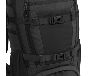 Highlander Eagle 3 Backpack 40L Black (TT194-BK) - місткий і надійний рюкзак для тривалих виходів. Модель виготовлена із міцного водостійкого поліестеру 600D XTP із поліуретановим покриттям, має систему кріплень MOLLE, велике відділення на блискавках для зберігання спорядження в польових умовах, а також дві еластичні бічні кишені. М'яка спинка, компресійні ремені та ручка для перенесення роблять цей рюкзак зручним для користування. Регульовані лямки з м’якими підкладками та регульований поясний ремінь розподіляють навантаження, щоб забезпечити Вам комфорт під час щоденного носіння. Все це гарантує, що даний рюкзак витримає тривалу експлуатацію.