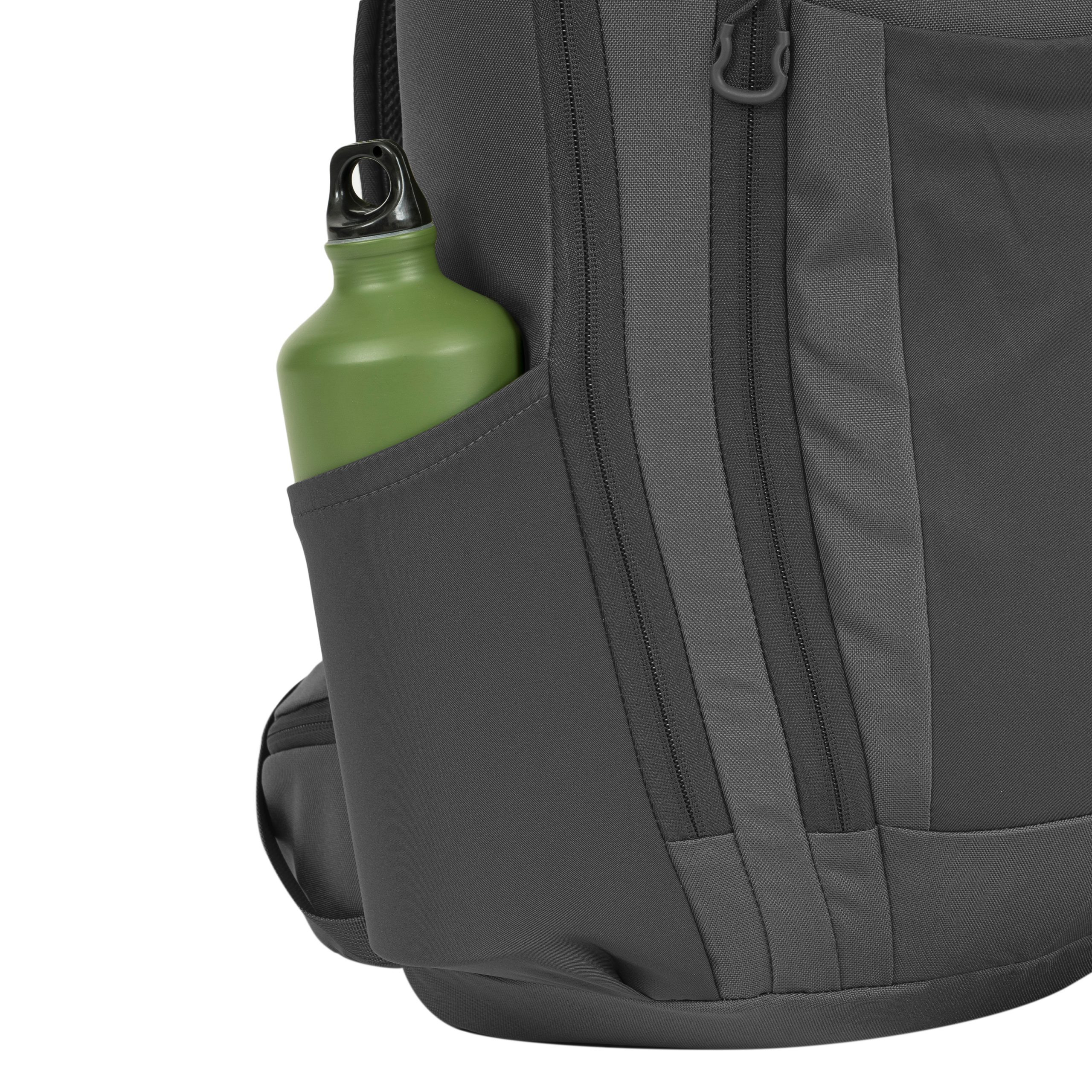 Highlander Eagle 2 Backpack 30L Dark Grey (TT193-DGY) - місткий і надійний рюкзак для щоденного носіння. Модель виготовлена із міцного водостійкого поліестеру 600D XTP із поліуретановим покриттям, має систему кріплень MOLLE, велике відділення на блискавках для зберігання спорядження в польових умовах, а також фронтальну та дві еластичні бічні кишені. М'яка спинка, компресійні ремені та ручка для перенесення роблять цей рюкзак зручним для користування. Регульовані лямки з м’якими підкладками та регульований поясний ремінь розподіляють навантаження, щоб забезпечити Вам комфорт під час щоденного носіння. Все це гарантує, що даний рюкзак витримає тривалу експлуатацію.