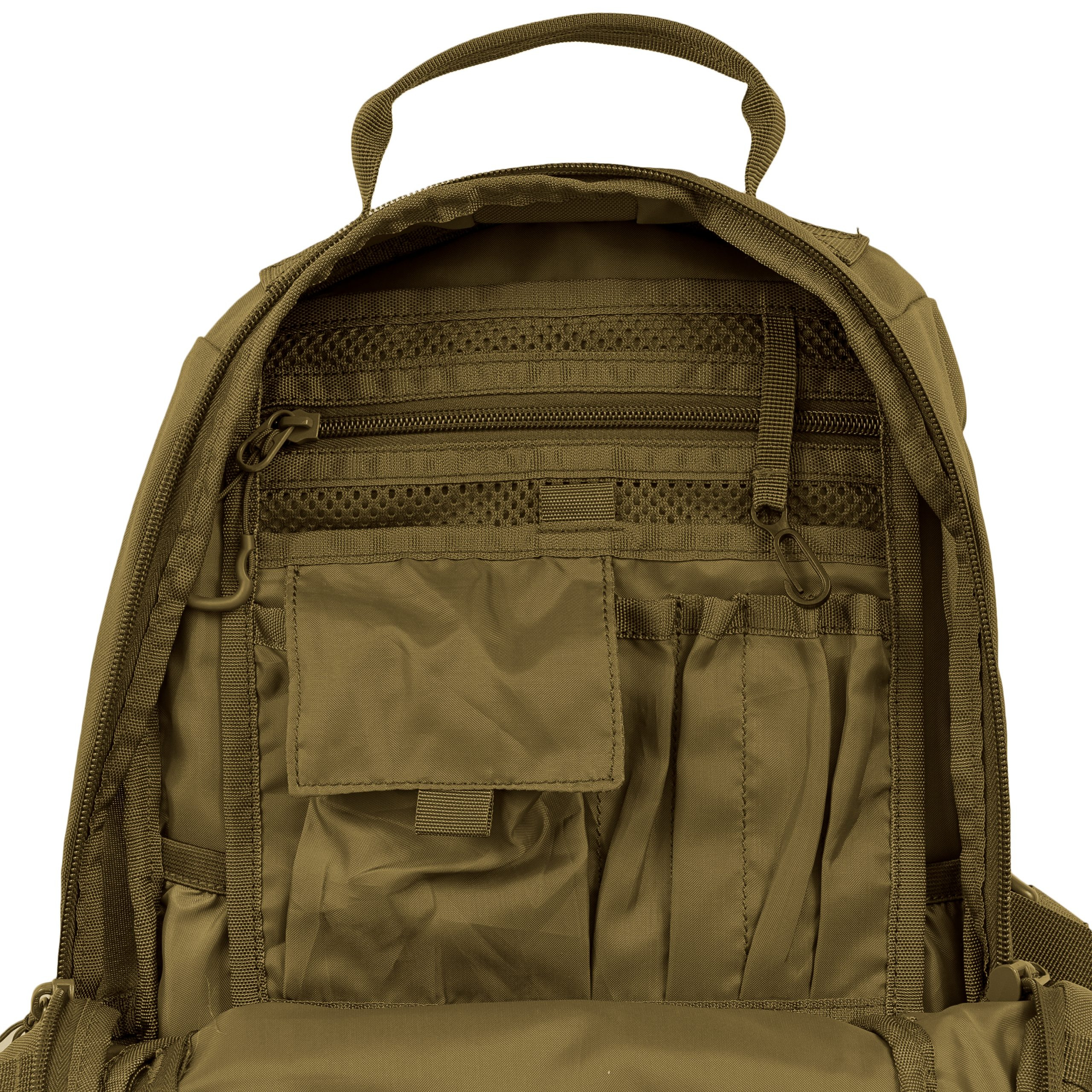 Окрім основного відділення та бічних еластичних кишень, цей рюкзак має систему кріплень MOLLE для фіксації спорядження, а також він сумісний із питною системою (гідратором).