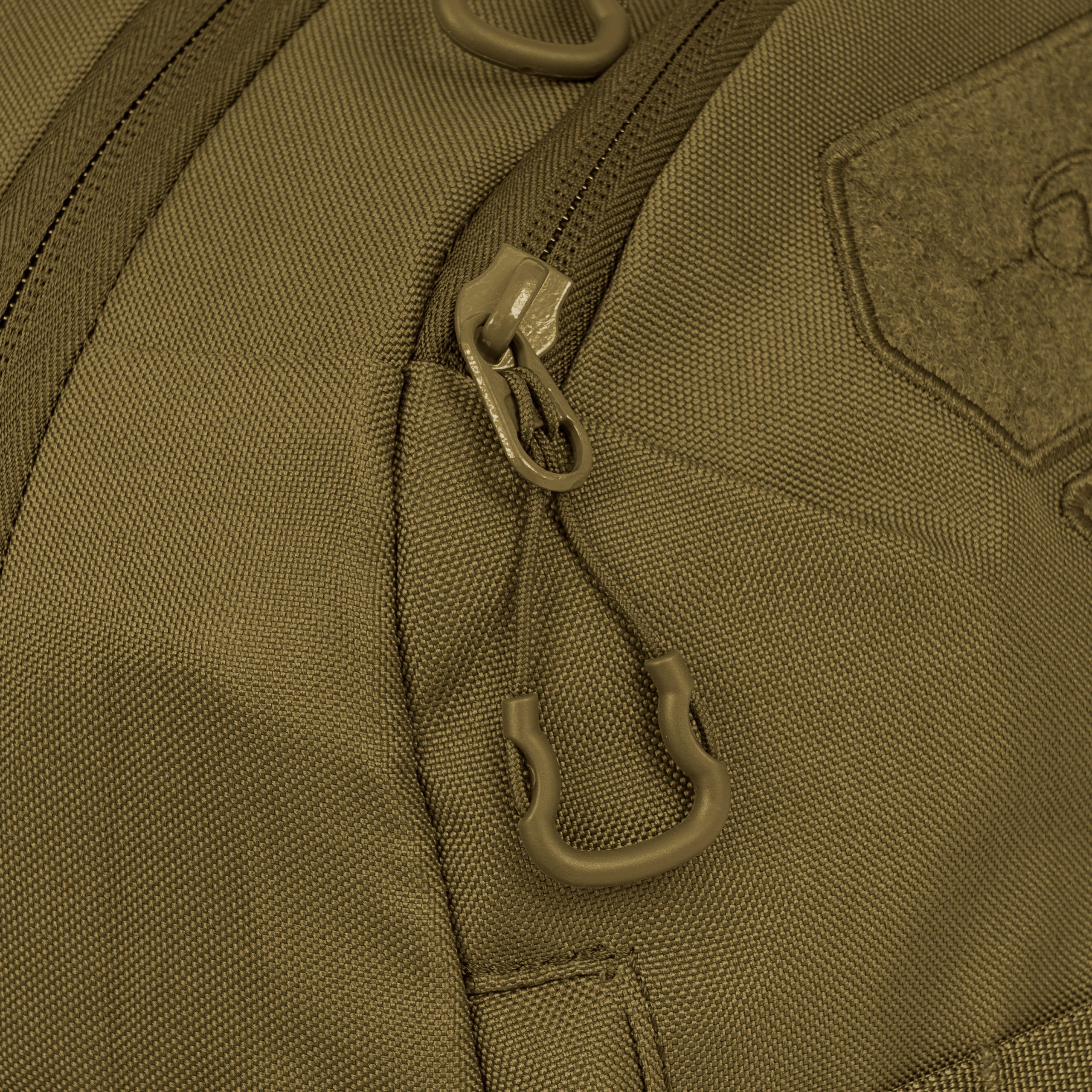 Highlander Eagle 1 Backpack 20L Coyote Tan (TT192-CT) - компактний і легкий рюкзак для одноденних виходів. Модель виготовлена із міцного водостійкого поліестеру 600D XTP із поліуретановим покриттям, має систему кріплень MOLLE, два окремих відсіки на блискавках для зберігання спорядження в польових умовах, а також дві еластичні бічні кишені для фляг. М'яка спинка, компресійні ремені та ручка для перенесення роблять цей рюкзак зручним для користування. Регульовані лямки з м’якими підкладками та нагрудна стяжка на фастексі забезпечують комфорт під час щоденного носіння. Все це гарантує, що даний рюкзак витримає тривалу експлуатацію.