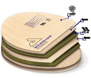 Основа для ракетки Joola Tezzo Warrior вражає потужною внутрішньою конструкцією з карбонового волокна KL-c і особливо чутливим верхнім шаром шпону з деревини Limba. Ця комбінація забезпечує м’яке відчуття удару та величезний ефект катапульти, який надає вашим атакувальним м'ячам більшої сили. У поєднанні з твердішими гумами це призводить до дуже добре збалансованої наступальної зброї. Гравці, які раніше грали ракетками з основами з суцільної деревини і хотіли перейти на карбонову основу знайшли перехід на TEZZO WARRIOR дуже успішним. Це було, зокрема, у випадку двох національних гравців Vitor Ishiy з Бразилії та Deni Kozul з Словенії.