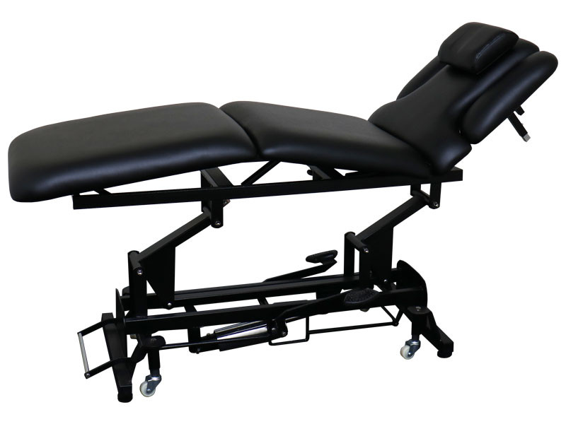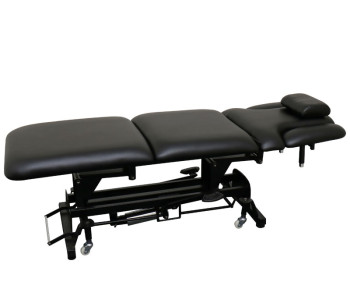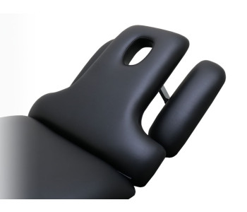 Можливість опустити підлокітники вниз відкриває майстру вільний доступ до плечового поясу. Кушетка також розкладається до повністю горизонтального положення, перетворюючись на повноцінний масажний стіл.