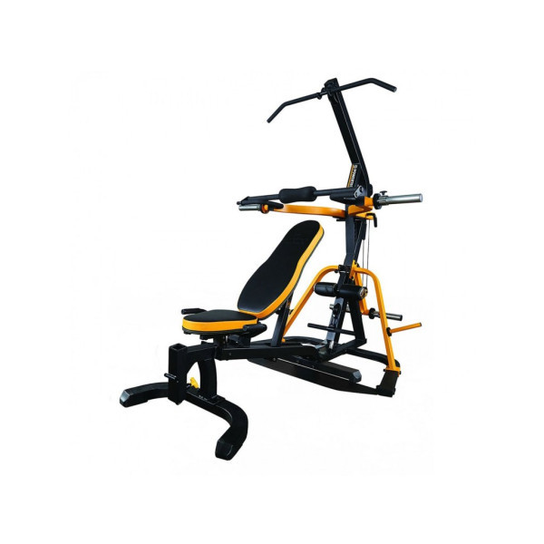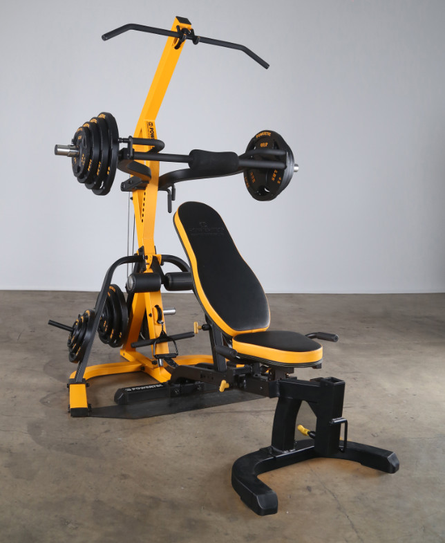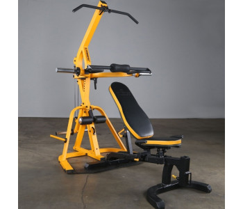 Тренажер дозволяє додавати різноманітні опції до лави, які легко регулюються за висотою. Вантажі фіксуються надійними замками, забезпечуючи стабільність під час виконання вправ на верхній та нижній блоки.