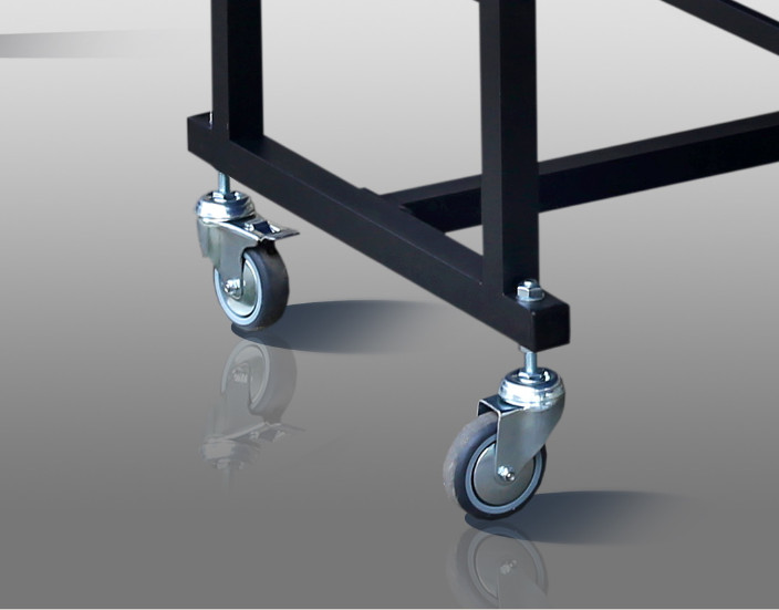 ✅ Зручні колеса: 4 колеса діаметром 75 мм з фіксацією ходу забезпечують легке переміщення столу.