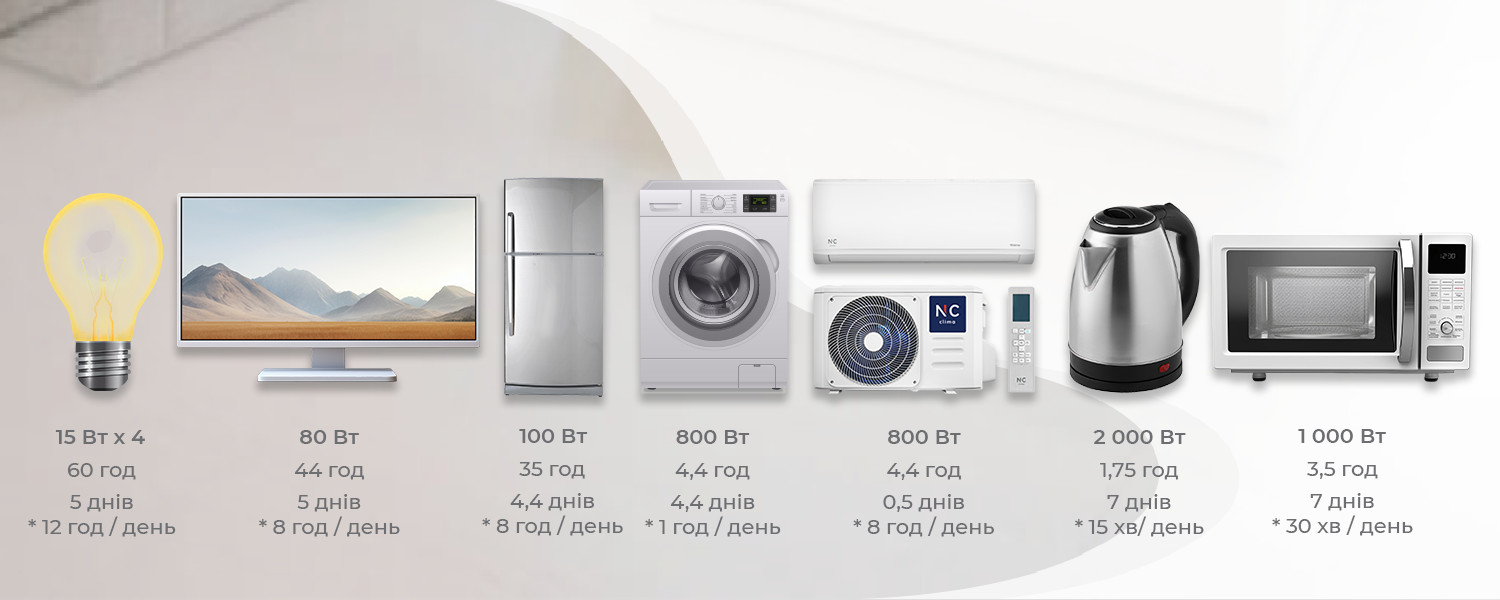 телевізор 150 Вт → понад 20 годин
