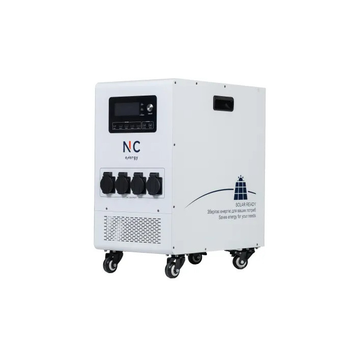 Портативний накопичувач енергії NC energy NCE5P5U48ua має “гібридний” тип використання. З одного боку вбудовані інтерфейси дозволяють застосовувати обладнання для підключення окремої побутової техніки напряму — без спеціального монтажу. Для зручного переміщення передбачені коліщата.