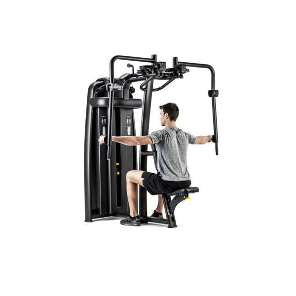 🔄 Подвійний функціонал: Тренажер дозволяє швидко перемикатися між тренуванням великих грудних м'язів та заднього пучка дельт. Це заощаджує місце в залі без втрати варіативності тренінгу.