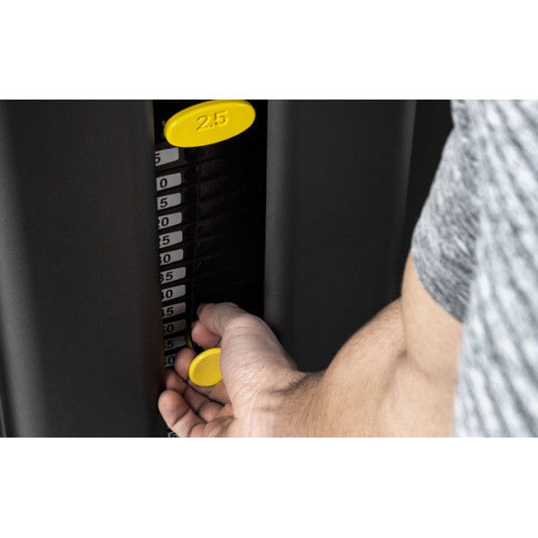 ⚖️ Система Smart Pin: Унікальний додатковий стек 2,5 кг дозволяє збільшувати навантаження плавно. Це критично важливо для ізольованих вправ, де стандартний крок ваги може бути занадто різким.