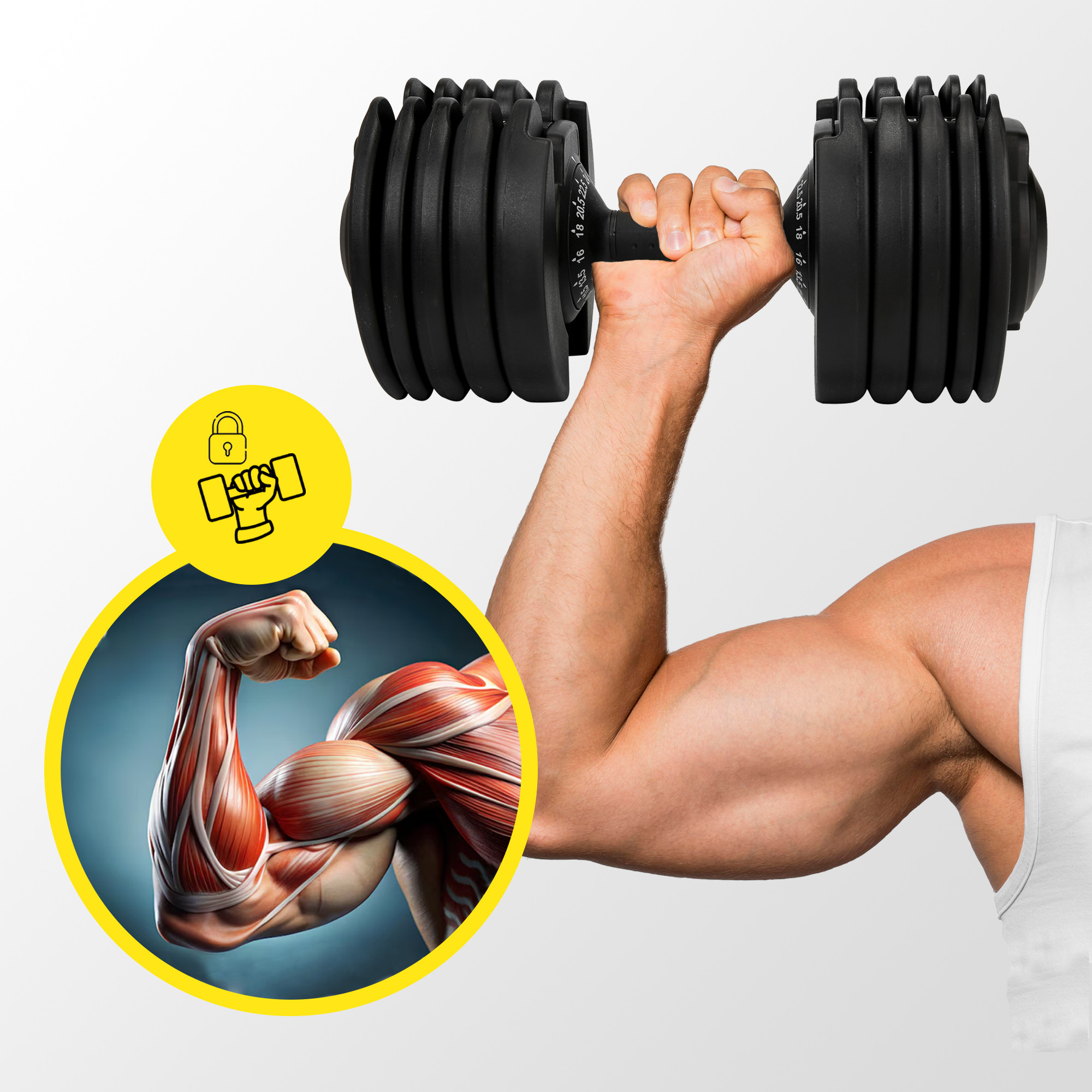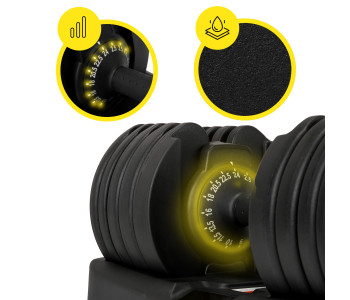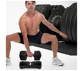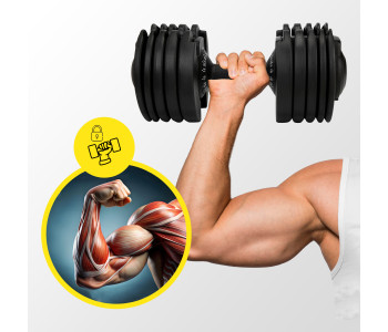 ✅ Широкий діапазон ваги: Насолоджуйся 15 різними варіантами ваги від 2.5 до 24 кг, що дозволяє адаптувати тренування під будь-який рівень підготовки та досягати поставлених цілей. Регульована гантель замінить цілий набір класичних гантелей, заощаджуючи місце та гроші.