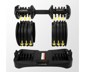 💪 Га́нтель Cornix XR-0405 Black 2.5-24 кг – твій особистий фітнес-зал вдома! Хочеш накачати м'язи, не виходячи з дому? Ця регульована гантель від Cornix – ідеальне рішення для ефективних та різноманітних тренувань! 🏋️♂️