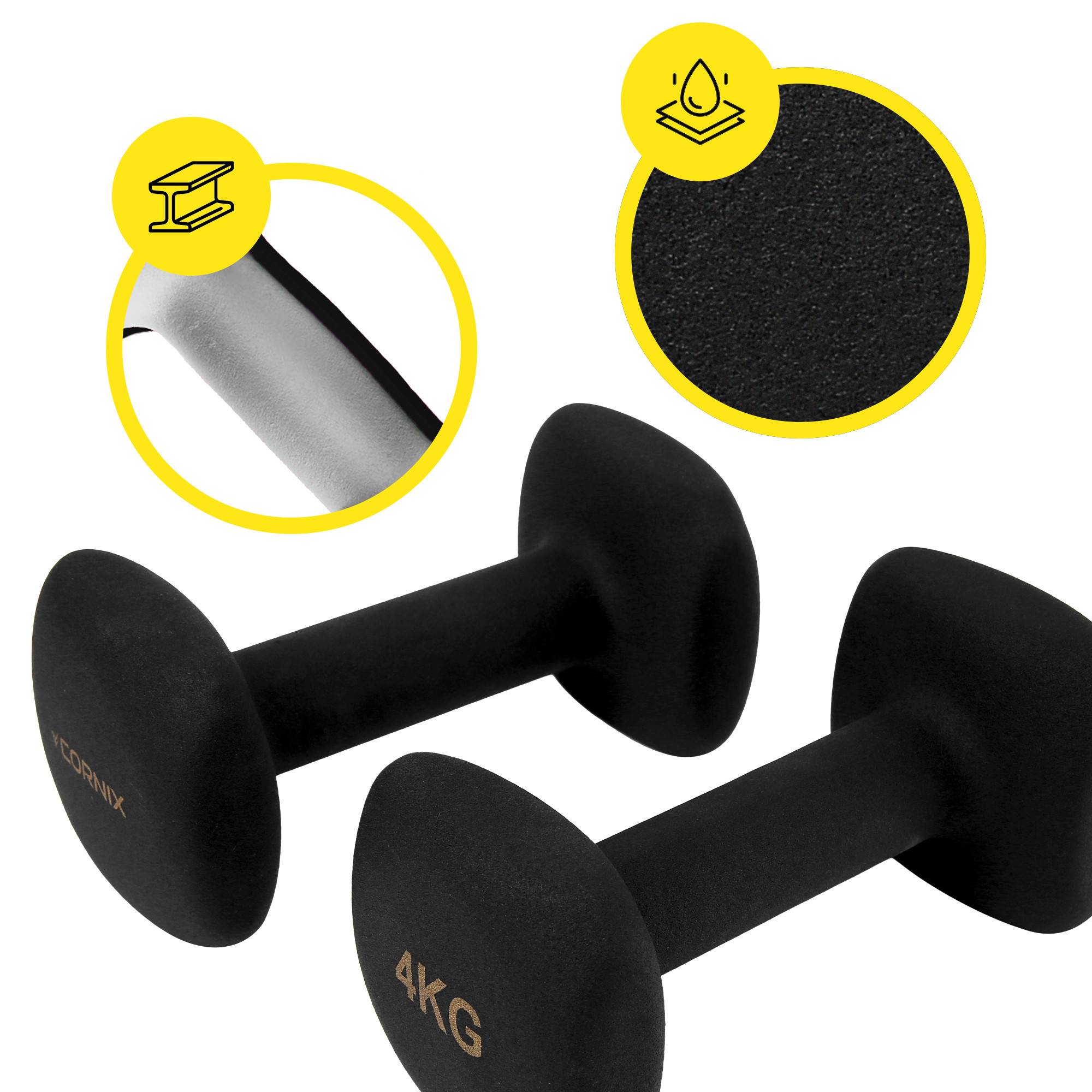 🌟 Основні переваги Гантелі вінілові Cornix Square 2 x 4 кг XR-0409 Black: