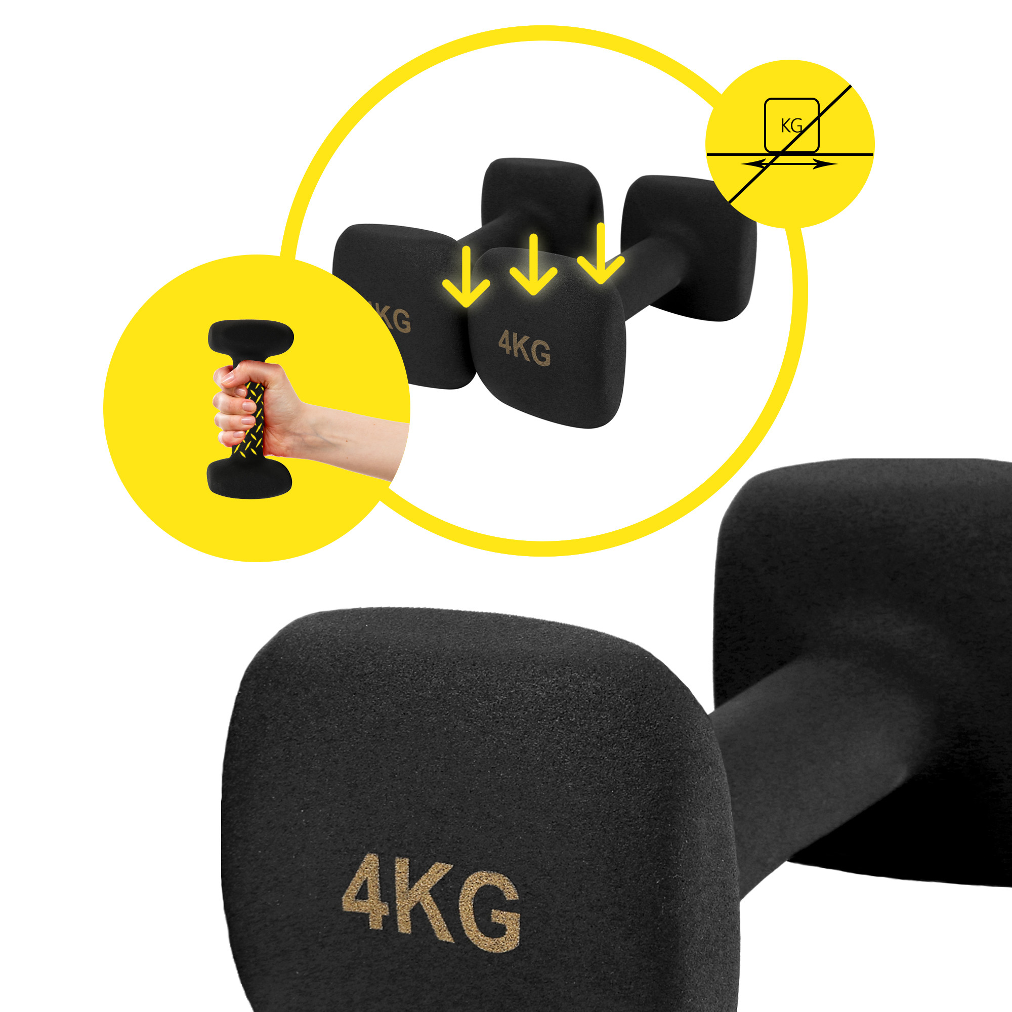 ✅ Стійкість та безпека: Чотиригранна форма гантелей забезпечує надійну основу та запобігає їх скочуванню під час виконання вправ. Це знижує ризик травм та підвищує ефективність тренувань. 🛡️