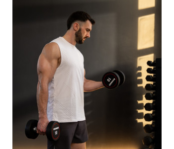 🔇 Акустичний комфорт: Поліуретановий шар ефективно гасить шум при зіткненні гантелей одна з одною або підлогою, створюючи комфортну атмосферу в тренувальній зоні.