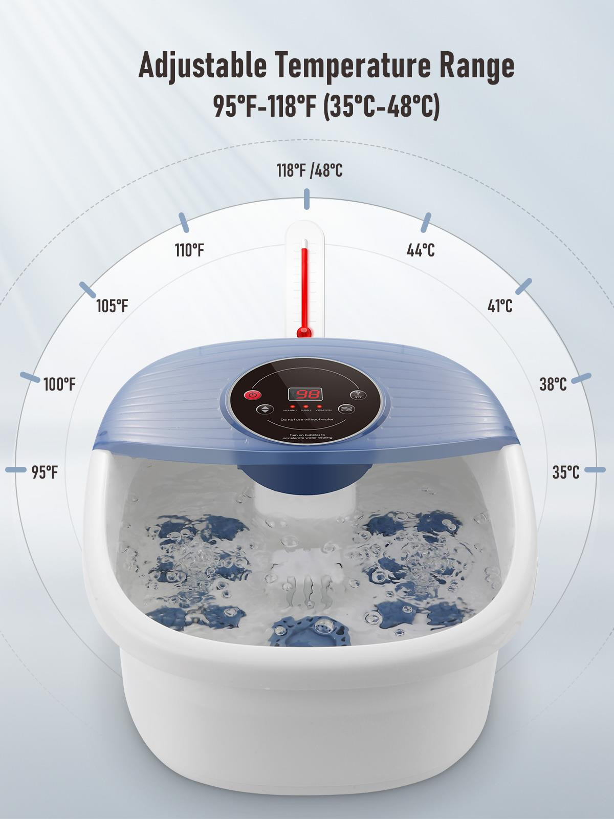🔥 Інтелектуальний підігрів: Налаштовуйте температуру води від 35°C до 48°C. Масажер не лише нагріває воду, а й підтримує обраний режим протягом усього сеансу, позбавляючи вас потреби доливати окріп.