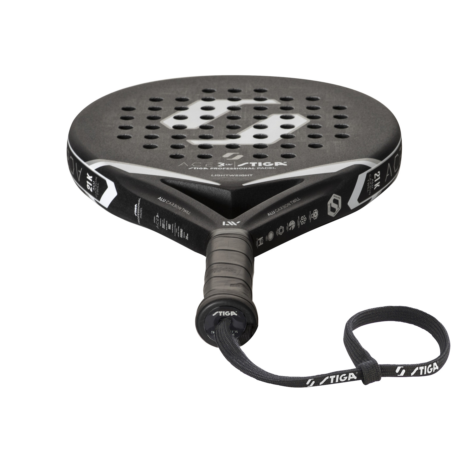 Stiga Racket ACE 3 LW це полегшена версія Stiga ACE3 нашої найшвидшої моделі на сьогодні, яка має надійне та унікальне відчуття контролю. Як і її двійник, Stiga ACE 3 LW – це швидка та стабільна ракетка, але з меншою вагою для зручності користування. Це швидка, стабільна та потужна ракетка в мінімалістичному скандинавському дизайні з безкомпромісною продуктивністю. Виготовлена з карбонового волокна 21K та ексклюзивної обробки алюмінієм, яка скріплює плетіння. Технологія Alu Carbon Twill пропонує фантастичний контроль та відчуття при кожному ударі м'яча. Ця добре розроблена ракетка з твердими поверхневими матеріалами виводить вашу гру на новий рівень. Завдяки карбоновому волокну 21K, ракетка ACE 3 має унікальне відчуття контролю, ідеальне для гравців середнього та досвідченого рівня, які шукають багато потужності та більшого контролю на всьому майданчику. Зона удару Optispot Pro забезпечує чудове відчуття контролю, навіть при ударах поза центром без шкоди для швидкості чи потужності. Вся рама виготовлена з карбонового волокна для підвищення ударостійкості та довговічності, забезпечуючи при цьому хорошу стабільність. Серцевина з гіперм'якої піни EVA містить дрібні бульбашки повітря, які гармонійно працюють з вуглецевим волокном, роблячи цю ракетку неймовірно міцною, забезпечуючи чудове відчуття як в нападі, так і в захисті. Руків'я посилено скловолокном для м'якшої передачі сили при кожному ударі, тим самим захищаючи ваш лікоть.