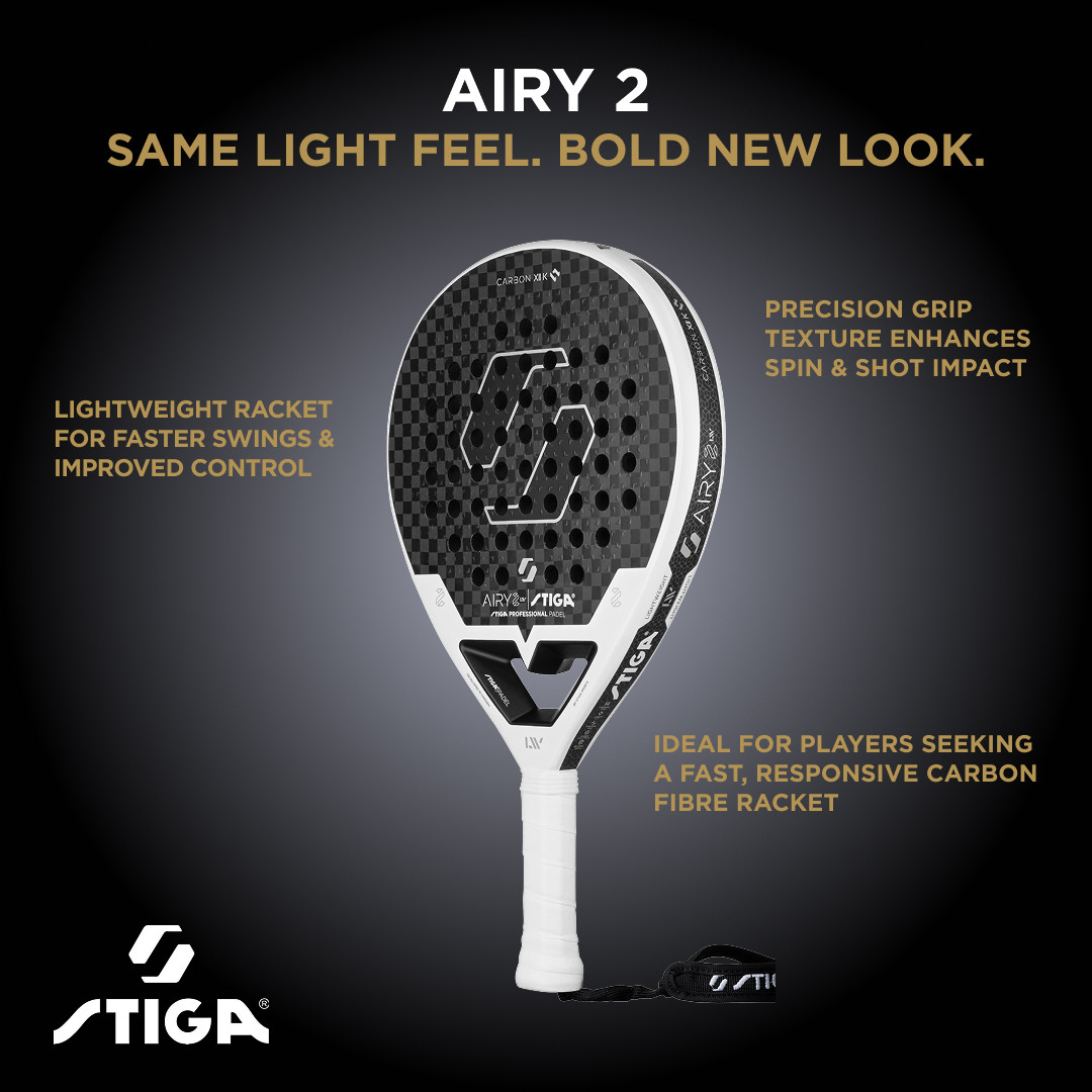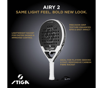 Ракетка для падел тенісу Stiga Racket AIRY 2 наступниця нашої популярної легкої ракетки Stiga Racket AIRYяка створена для швидкості, відчуття м'яча та контролю – з мінімальним навантаженням на лікоть та зап'ястя.