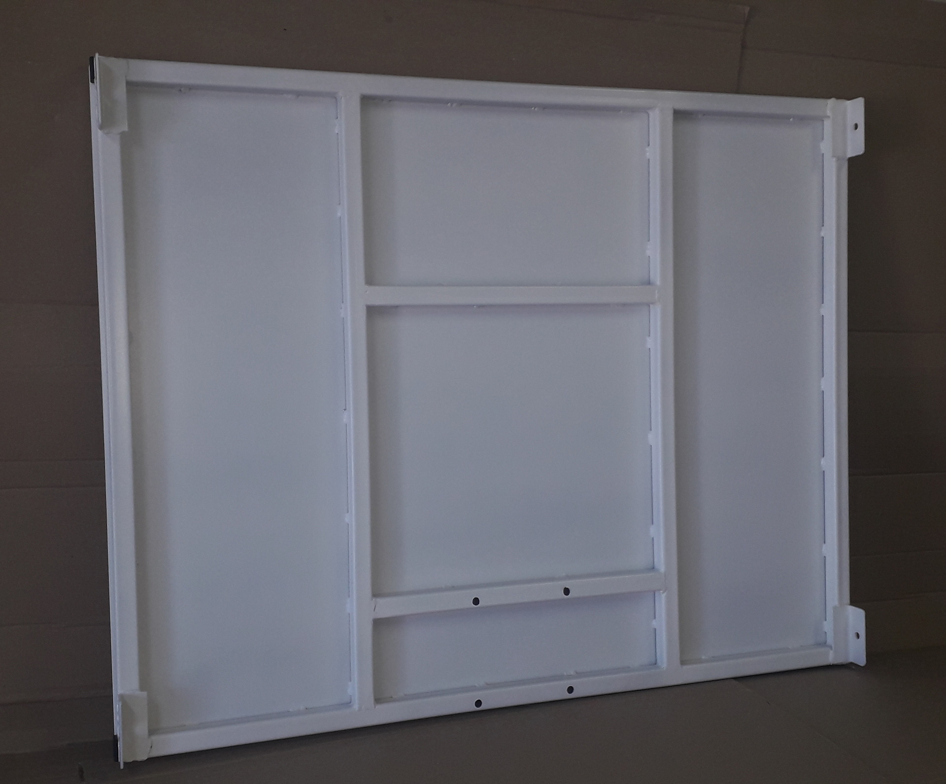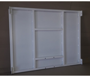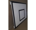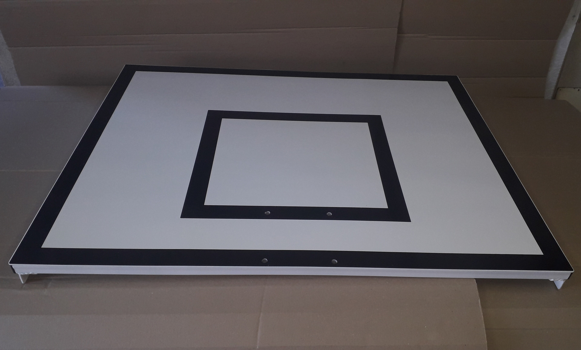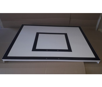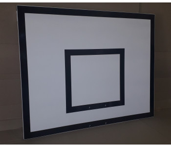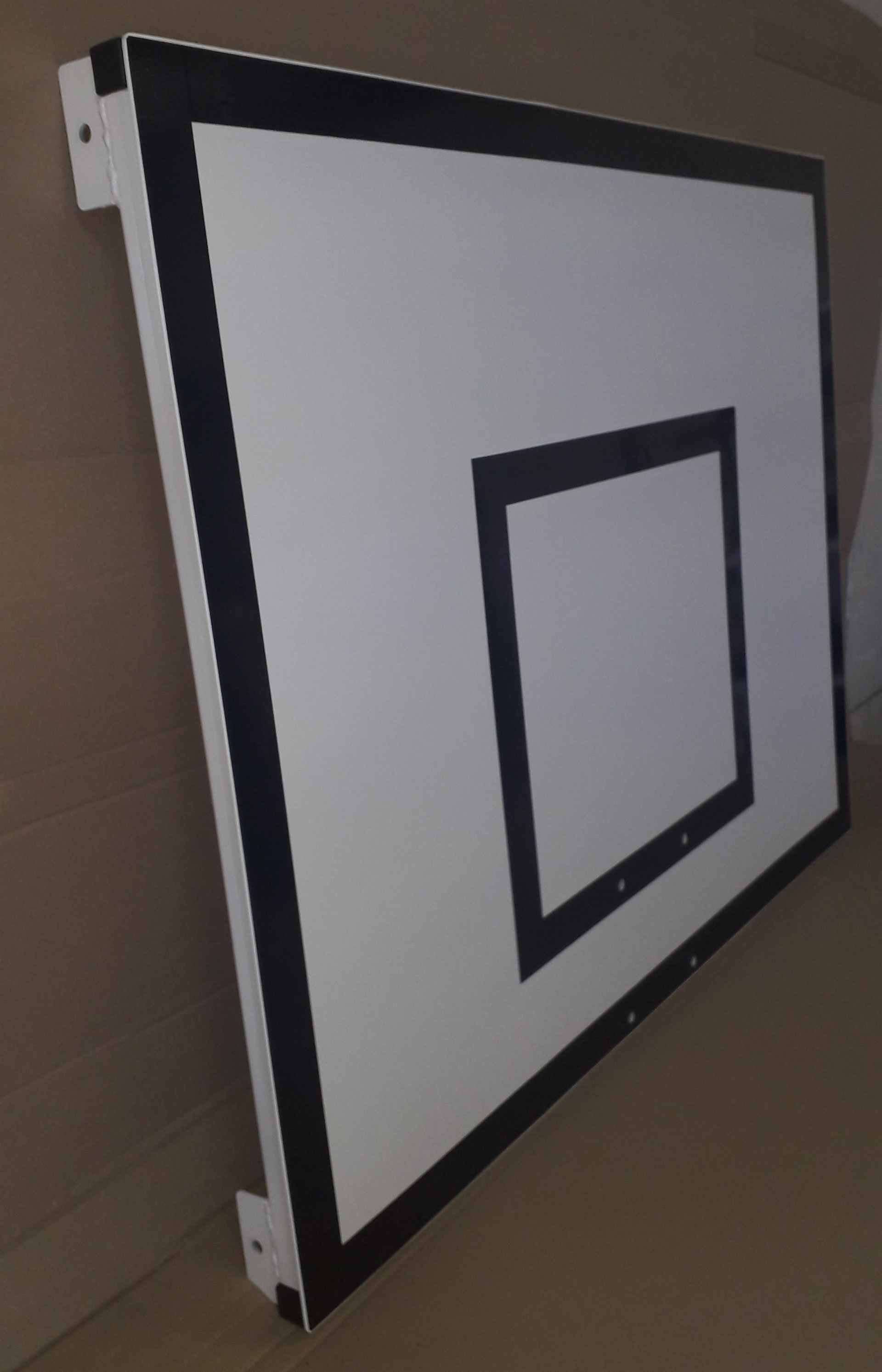 Щит являє собою панель з листа металу товщиною 2 мм. Рама щита (квадратна труба 25х25мм.) зміцнює загальну конструкцію баскетбольного щита і запобігає його вібрацію. Щит підходить для установки в залі і на вуличному майданчику. Фарбування баскетбольного щита в білий колір з попереднім нанесенням грунту запобігає його корозію.