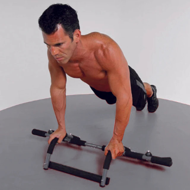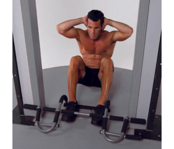 Головна особливість моделі - це можливість миттєво змінити положення. Тренажер кріпиться на анкер з гаком (в комплект не входять). Вам достатньо просто зняти його і використовувати, як упор для занять на прес чи як бруси для пропрацювання трицепса та трапеції.