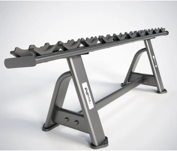 📐 Ергономічний нахил: Поверхня для зберігання розташована під кутом, що робить процес взяття та повернення гантелей максимально природним та безпечним для суглобів. Це критично важливо при роботі з гантелями великої ваги.