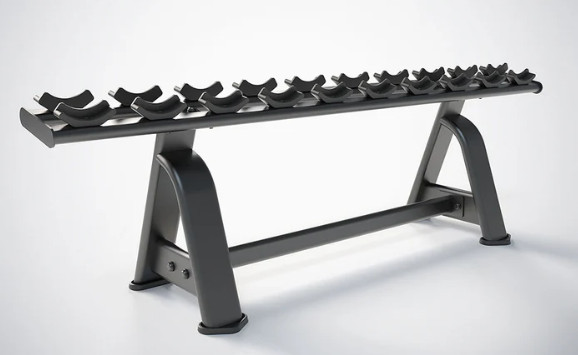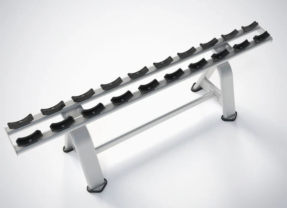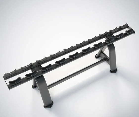 🔧 Естетика простору: Однорядне виконання дозволяє вибудувати гантельний ряд уздовж стіни або дзеркала, зберігаючи чудовий огляд та преміальний вигляд зони вільних ваг.