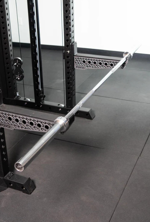 🛡️ UHMW-захист штанги: Верхня частина упорів покрита надміцним пластиком високої щільності (UHMW), який амортизує удар, захищає насічку грифа від стирання та запобігає появі вм'ятин на металі.