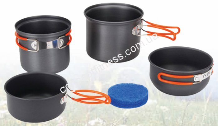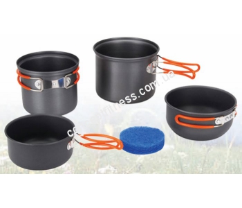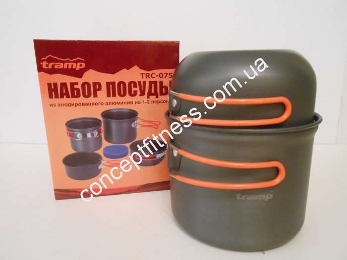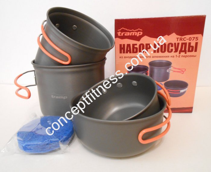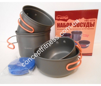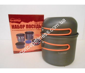 Набір посуду анодованої Tramp TRC-075 ndash; ідеальне рішення, яке підходить любителям активного дозвілля в природних умовах, а також турпоходах. У виготовленні даного набору використовувалися якісні і довговічні матеріали, що володіють рядом переваг: легкий вага, міцна структура, яка оберігає конструкцію виробу від зносу і деформації, стійкість до ерозії. Набір дозволяє легко привести посуд до очищеного станом і повної готовності до використання завдяки наявності спеціальної губки. У комплекті надаються 2 казанка з об'ємом 1,3 і 0,9 літрів, оснащені зручними ручками і сковорідками, також є кришками.