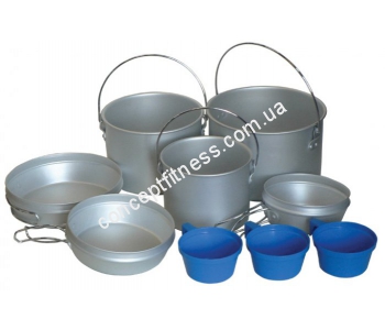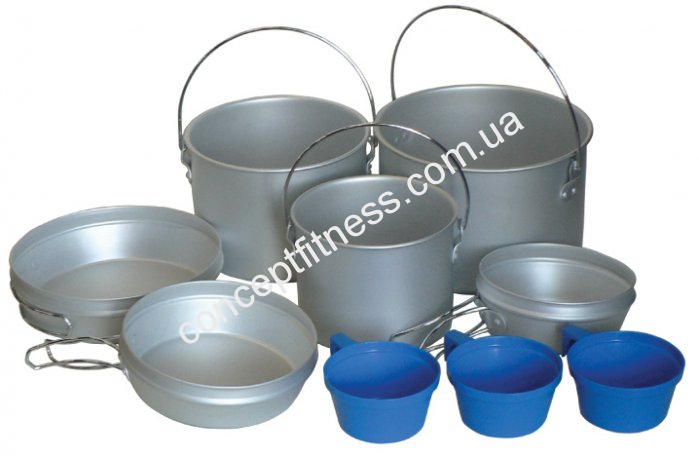Набір посуду з алюмінію Tramp TRC-002 ndash; надійний продукт, що дозволяє без зайвих турбот приготувати обід для всієї компанії, адже місткі казанки з комфортними складаються ручками і прилеглої без утворення щілин кришечкою мають достатній обсяг, надаючи можливість за один присід приготувати велику кількість їжі. Приємною особливістю є багатофункціональність кришок казанків, вони легко перетворюються в сковорідки, тим самим заощаджуючи час і місце. Перенесення і підтримку комплекту в чистоті не складає особливих труднощів завдяки високій якості всіх елементів вироби.