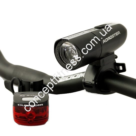 Комплект Sigma Sport Roadster /Cuberider складається з однойменних моделей передньої фари та заднього габариту. Розглянутий набір є оптимальним для більшості велосипедистів, як з точки зору функціональності приладів, так і за ціною. Фара Roadster сумісна з рулями всіх розмірів, оскільки вона кріпиться на універсальний затиск. Концентрований і рівномірний пучок світла дає яскравість, рівну 16 люкс. Задній габарит Cuberider має округлу форму, завдяки чому радіус її видимості з боку дорівнює 220 градусам. Світність забезпечують 4 яскравих світлодіода. Кріплення приладів гранично простий і не вимагає додаткових інструментів.