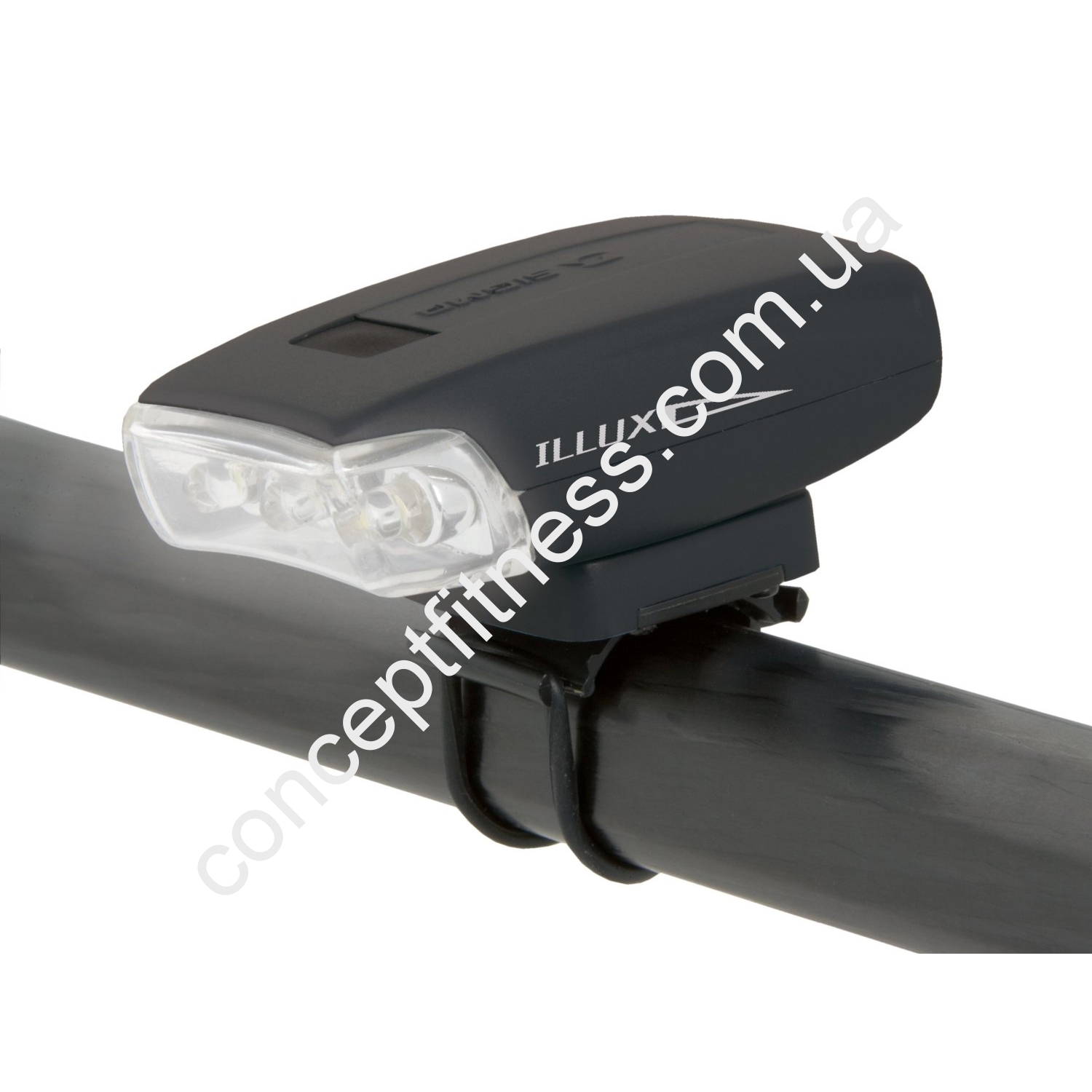 Фара Sigma Sport Illux Led Safety Light Int. оснащена трьома досить яскравими світлодіодами, які чудово висвітлюють шлях, і роблять велосипедиста видимим за багато метрів до спостерігача. Фара працює в двох режимах, в залежності від поточної необхідності. Фара може або висвітлювати дорогу в форматі безперервного світіння, або ж привертати увагу інших учасників руху, працюючи в миготливому режимі. Живлення приладу здійснюється за рахунок трьох батарейок ААА формату, які забезпечують світіння фари до 40 годин. Кріплення підходить до керма, діаметр яких в діапазоні 22-32 мм. Корпус герметичний.